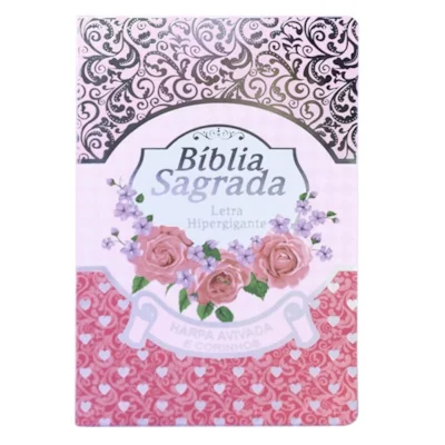 Bíblia Sagrada com Harpa Avivada e Corinhos Letra Hipergigante ARC Luxo Laminada Rosa