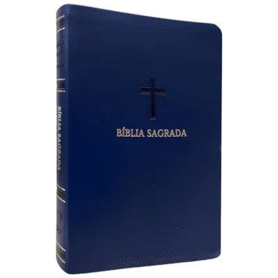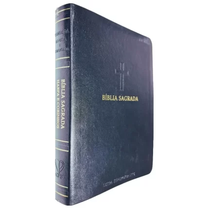 Bíblia Sagrada Letra Hipergigante ARC Harpa Avivada e Corinhos Capa PU Luxo Cruz Azul